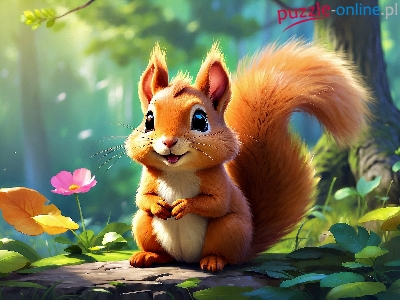 Puzzle Kwiaty, Wiewiórka, Drzewa, Grafika