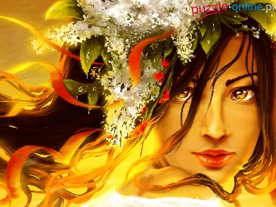 Żółte, Dziewczyna, Kwiaty, Grafika, Wianek, Twarz, Oczy