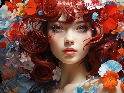 Puzzle Kwiaty, Rudowłosa, Dziewczyna, Grafika