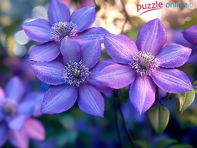 Puzzle Kwiaty, Powojnik, Fioletowe, Grafika