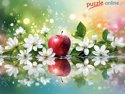 Czerwone, Białe, Jabłko, Grafika AI, Kwiaty