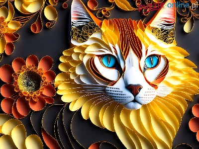 Puzzle Kwiaty, Kot, Kolorowe, Grafika