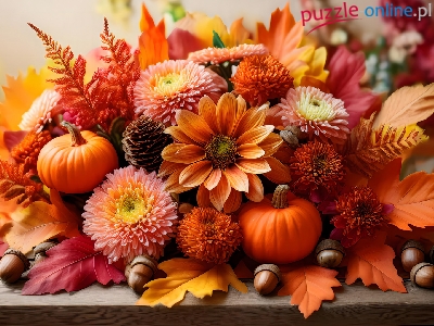 Żołędzie, Liście, Kwiaty, Grafika, Dynie, Bukiet, Kompozycja