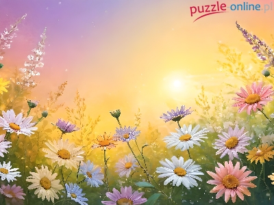 Puzzle Kwiaty, Kolorowe, Margerytki, Grafika