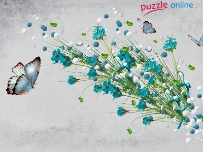 Puzzle Kwiaty, Grafika, Motyle