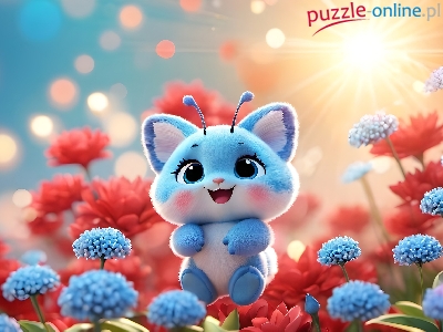 Puzzle Kwiaty, Stworek, Niebieskie, Grafika