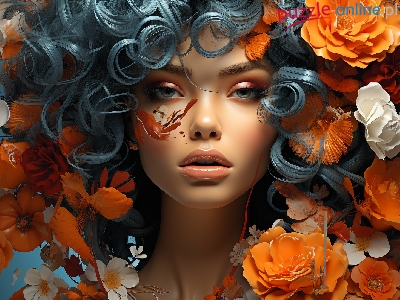 Puzzle Kwiaty, Kobieta, Pomarańczowe, Grafika