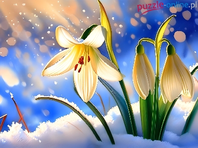 Puzzle Kwiaty, Białe, Przebiśniegi, Grafika