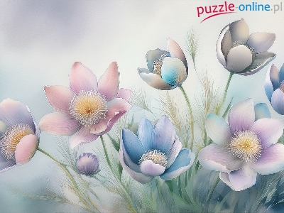 Puzzle Kwiaty, Kolorowe, Sasanki, Grafika