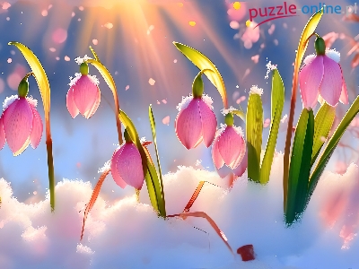 Różowe, Grafika, Kwiaty, Słońce, Śnieg