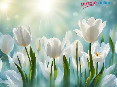 Puzzle Kwiaty, Białe, Tulipany, Grafika