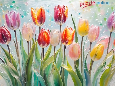Puzzle Kwiaty, Różnokolorowe, Tulipany, Grafika