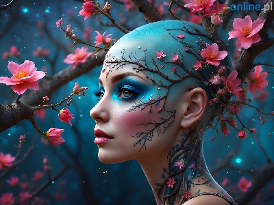 Puzzle Kwiaty, Kobieta, Twarz, Grafika