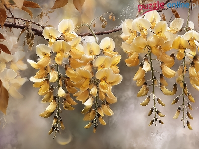 Gałązka, Żółte, Złotokap, Grafika AI, Kwiaty