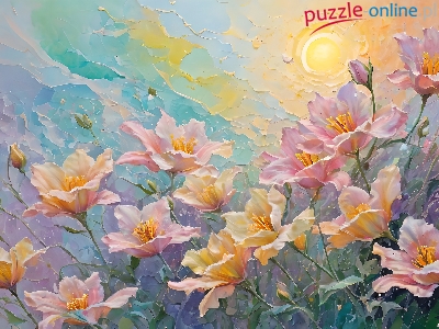 Puzzle Kwiaty, Różowe, Żółte, Grafika