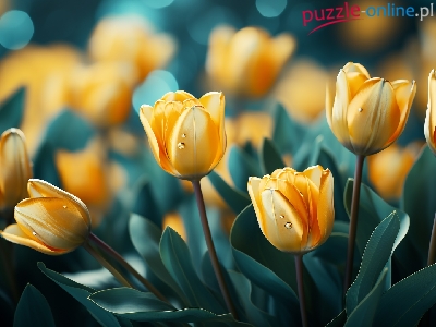 Puzzle Kwiaty, Tulipany, Żółte, Grafika