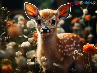 Puzzle Łąka, Sarna, Kwiaty, Grafika