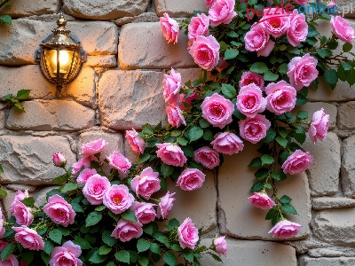 Róże, Ściana, Kwiaty, Grafika AI, Lampa