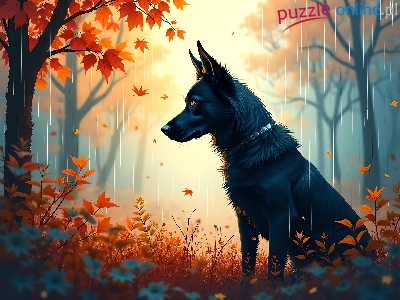 Drzewa, Czarny, Las, Grafika, Jesień, Pies, Deszcz