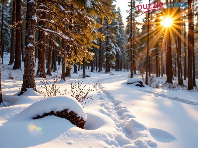 Zima, Drzewa, Las, Grafika AI, Promienie słońca