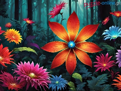 Puzzle Las, Kwiaty, Kolorowe, Grafika