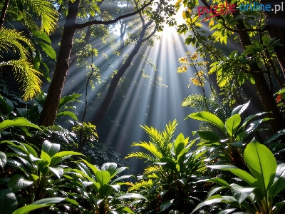 Tropikalny, Rośliny, Las, Grafika AI, Przebijające światło