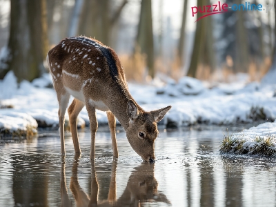 Sarna, Zima, Woda, Grafika AI, Las