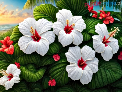 Puzzle Liście, Hibiskus, Kwiaty, Grafika