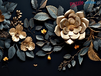 Puzzle Liście, Złote, Kwiaty, Grafika