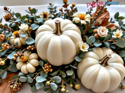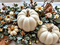 Białe, Kwiaty, Dynie, Grafika AI, Listki