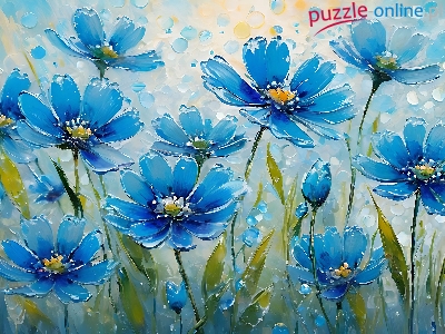 Puzzle Listki, Niebieskie, Kwiaty, Grafika