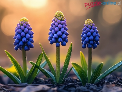 Niebieskie, Kwiaty, Szafirki, Grafika AI, Listki