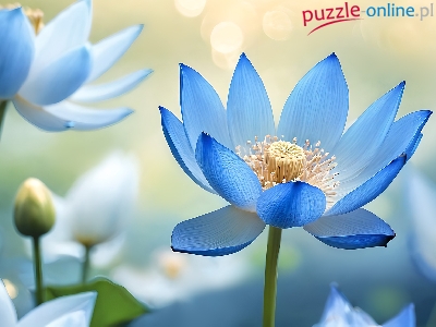 Puzzle Lotos, Niebieski, Kwiat, Grafika