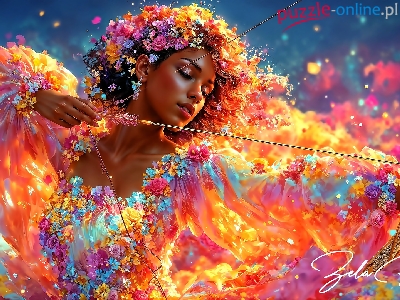 Kobieta, Kwiaty, Suknia, Grafika AI, Łuk