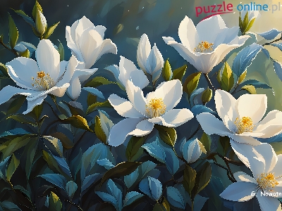Puzzle Magnolie, Białe, Kwiaty, Grafika