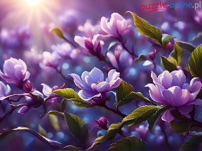 Puzzle Magnolie, Fioletowe, Kwiaty, Grafika