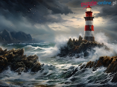 Morze, Sztorm, Skały, Grafika, Latarnia morska