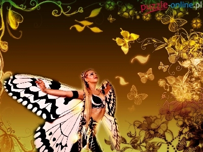 Puzzle Grafika, Kobieta, Motyl, Komputerowa