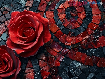 Mozaika, Róże, Czerwone, Grafika
