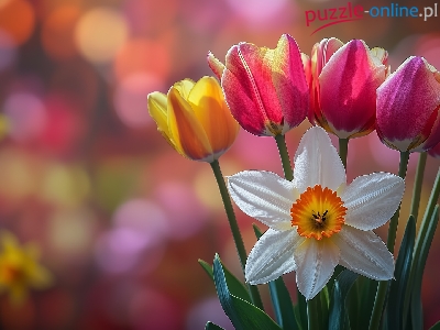 Puzzle Narcyz, Kwiaty, Tulipany, Grafika