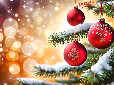 Czerwone, Choinka, Bombki, Grafika, Boże Narodzenie