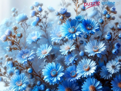 Puzzle Niebieskie, Rozwinięte, Kwiaty, Grafika