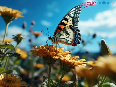 Puzzle Niebo, Motyl, Kwiaty, Grafika
