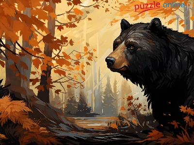 Puzzle Niedźwiedź, Jesień, Las, Grafika