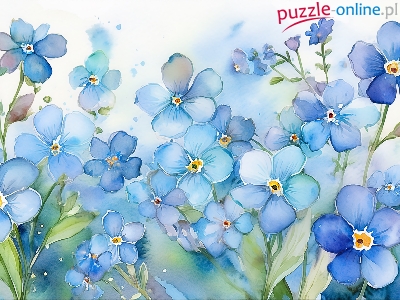 Puzzle Grafika, Kwiaty, Niezapominajki