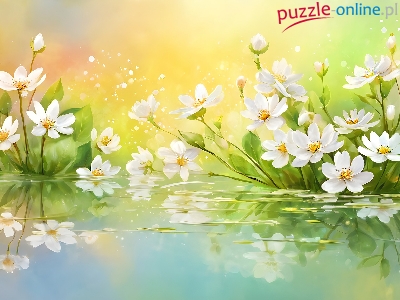 Białe, Woda, Kwiaty, Grafika AI, Odbicie