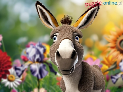 Puzzle Ogród, Osioł, Kwiaty, Grafika