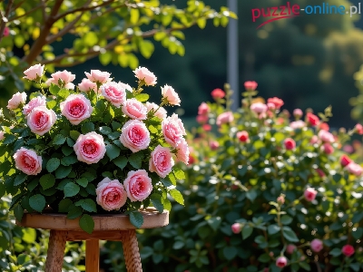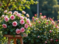Różowe, Bukiet, Róże, Grafika AI, Ogród