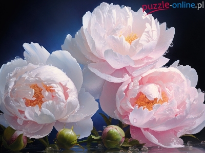Ciemne, Kwiaty, Pąki, Grafika, Jasnoróżowe, Piwonie, Tło