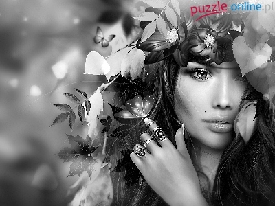 Pierścionki, Grafika 2D, Kobieta, Czarno-białe, Liście